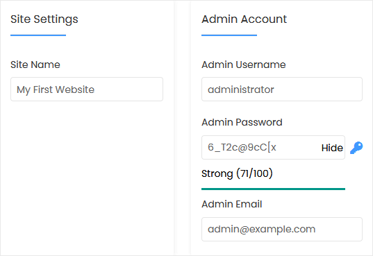• Admin Email: Your e-mail address.