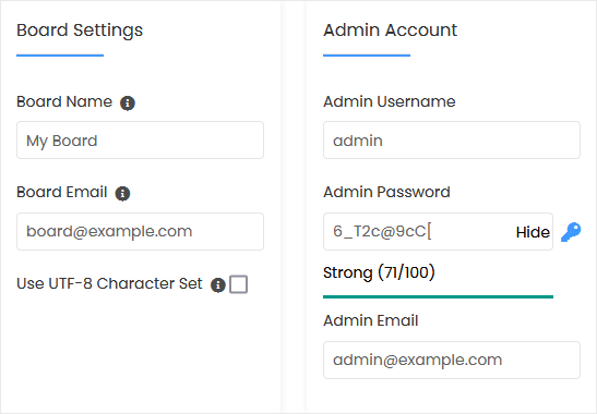 7. Under the Board Settings field, enter the following information: