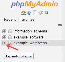 3. From the navigation tree in the left sidebar, select an appropriate database in which you want to import data using the SQL file.